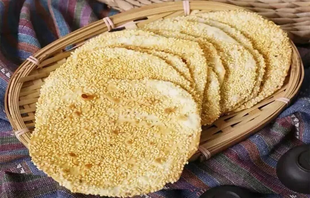 刚出炉的烧饼薄如纸页,正面密布芝麻,背面满是酥孔。轻轻一咬,“咔嚓”脆响,芝麻的焦香与小麦的甘甜瞬间在口中弥漫,回味无穷。