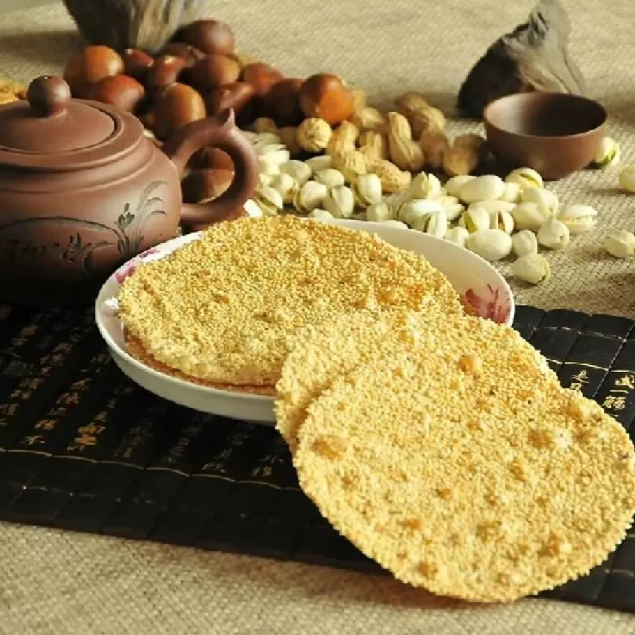 刚出炉的烧饼薄如纸页,正面密布芝麻,背面满是酥孔。轻轻一咬,“咔嚓”脆响,芝麻的焦香与小麦的甘甜瞬间在口中弥漫,回味无穷。