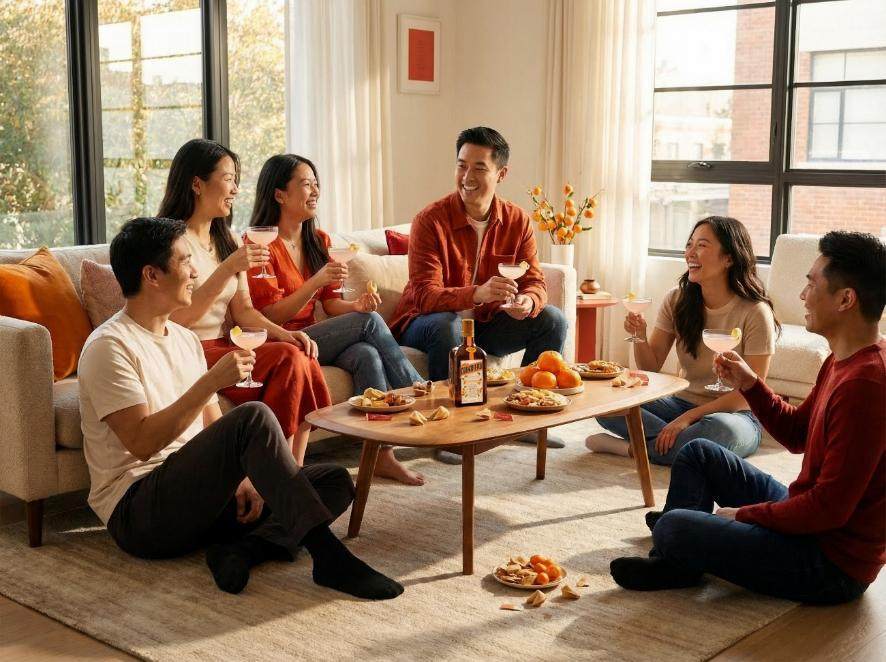 春节假期,终于有机会与久别的朋友们相聚,享受难得的放松时光。午后和好友坐在客厅来一场随兴小局,分享当下生活,回顾往日回忆。一杯君度春节玛格丽特鸡尾酒(Cointreau Chinese New Year Margarita),为新春小聚带来喜气与好意头,每一次碰杯都承载节日欢庆。有朋友的默契与支持,也有“时髦局,随兴造”的君度橙酒(Cointreau Liqueur) 为你撑腰,面对生活保持自信自洽、松弛自在的状态,陪伴新一年从容启程。