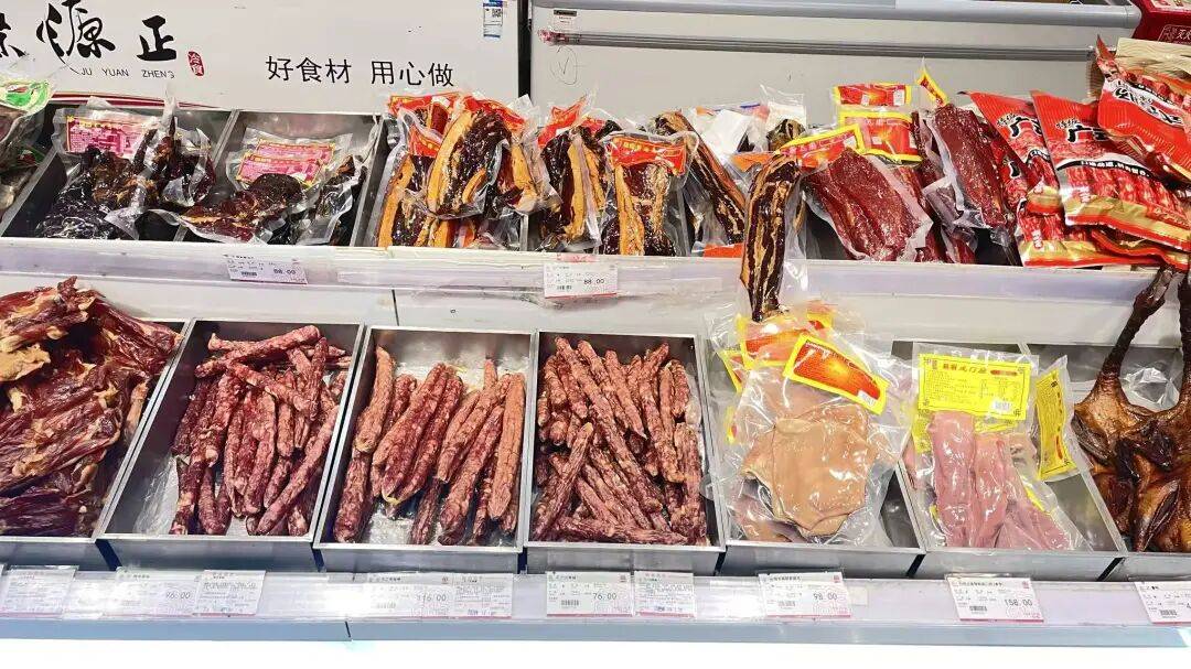 腊味是上海年夜饭的“咸香底色”,柜台前腌腊香气四溢,火腿紧实回甘、咸肉肥瘦相宜、手工香肠红亮多汁、酱油肉酱香软糯、腊鸡腿饱满入味。每一款都坚守传统古法工艺慢腌细晾,经过严格品质把控,让市民买得放心、吃得安心,为家宴添上经典本帮味。