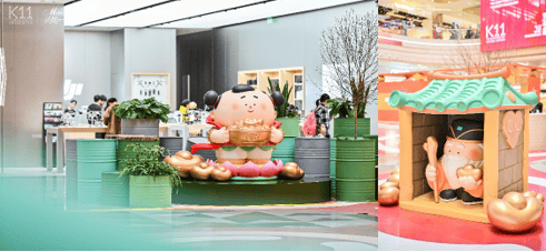 同时,商场中庭以“大美术馆快闪店”新年财神系列盲盒新品为灵感进行新春焕新,打造沉浸式新春美陈氛围,萌化版的“善财童子”、“关公”、“财帛星君”等财神形象雕塑吸引顾客纷纷打卡留念,收获一番好运。